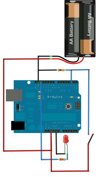 LED Eine Sekunde an, eine Sekunde aus wenn Schalter ein