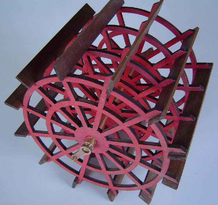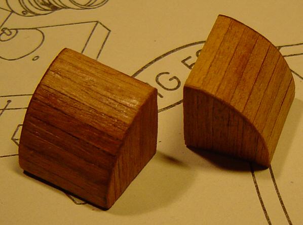 Figur 61 - Bugwinde. Mit einem Sockelschneider korrigiert man die Höhe der sechs einzusetzenden Elemente und klebt sie mit einem Tropfen Cyanacrylat fest. Dann steckt man die Messingstäbchen in die Löcher. Man lackiert mit Klarlack und setzt am Bug in Position.
