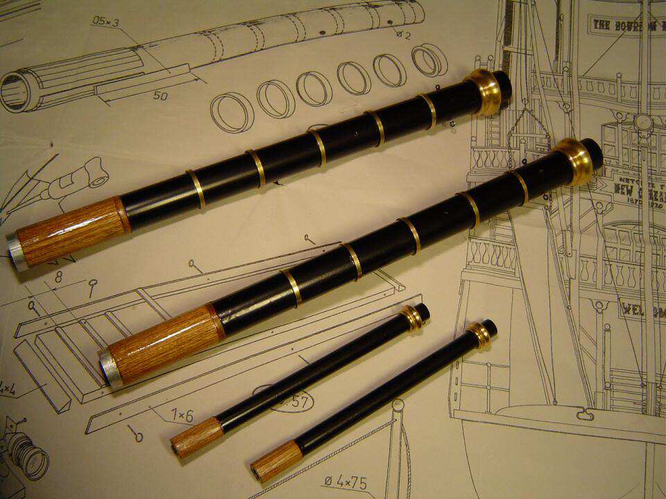 Dann steckt man sie langsam ins Rohr und befestigt sie mit einem Tropfen Cyanacrylat. Auch für die kleinen Rauchfänge gilt die gleiche Arbeitsprozedur, wobei man bedenken muss, dass die Verkleidung 24 mm hoch ist und mit dem Rohr auf gleicher Höhe liegt.